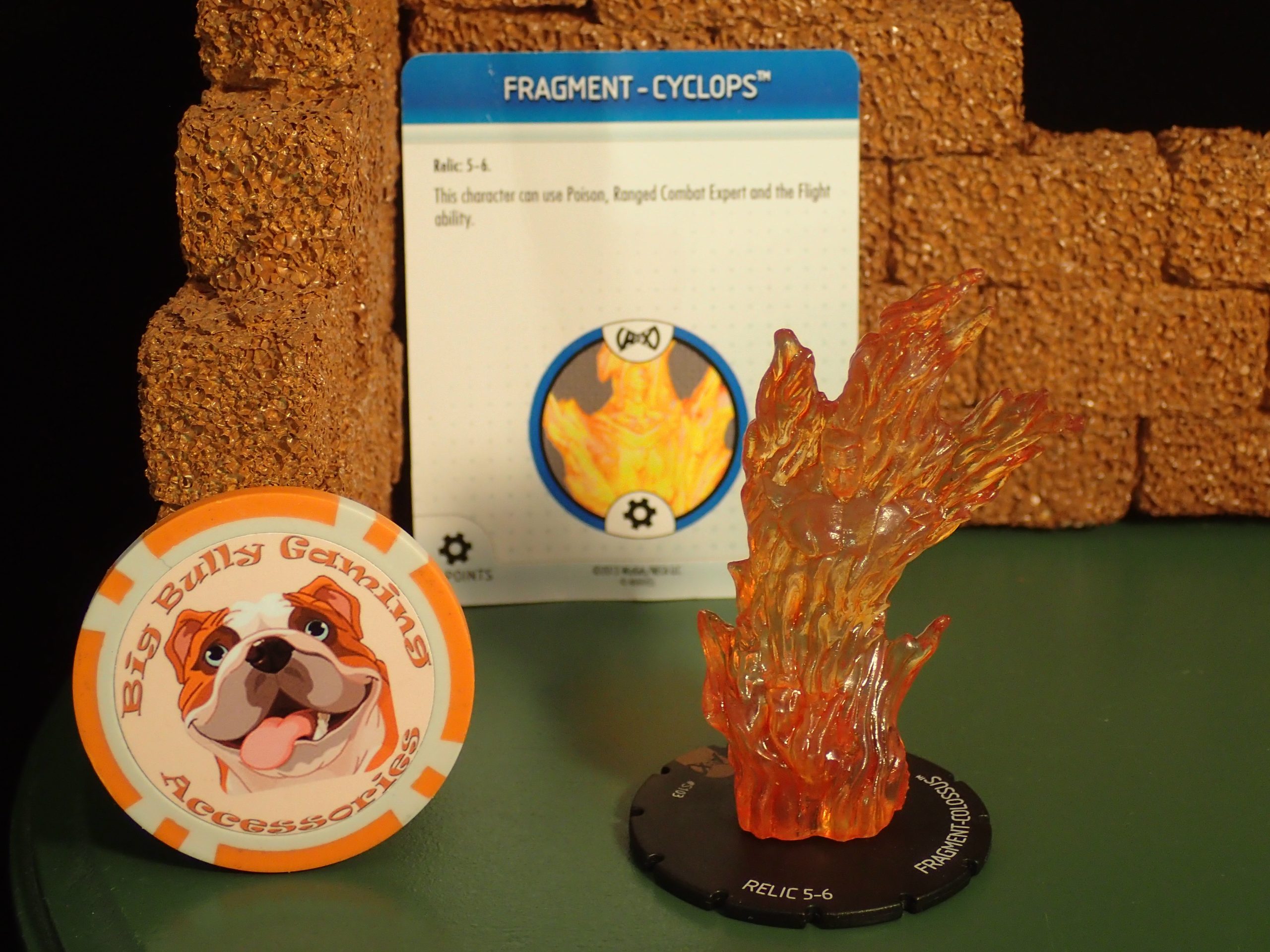Fragment- Cyclops #R101/S101 from the Avengers vs X-Men set, and matching card. Can be used as a Relic or in conjucntion with the Phoenix Force Resource dial.