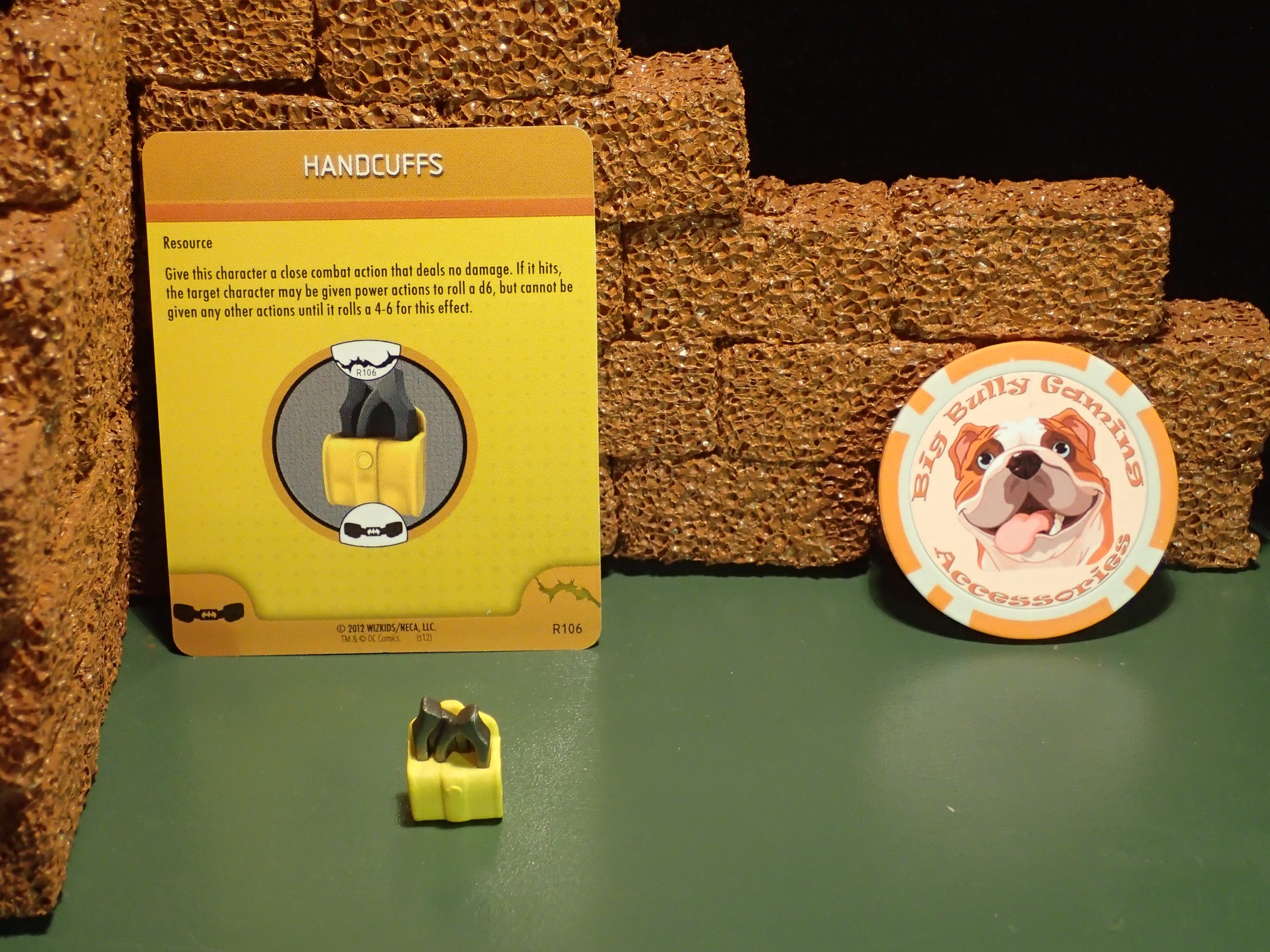 Handfuffs (Relic) #R106/S106 from the No Man’s Land set, and matching card. May be played on the Utility Belt resource.