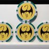 Green, 14 gram, composite chips. Glossy, full color, water resistant labels. Graphics are recessed below the outer level of the chip, to help prevent scratching.