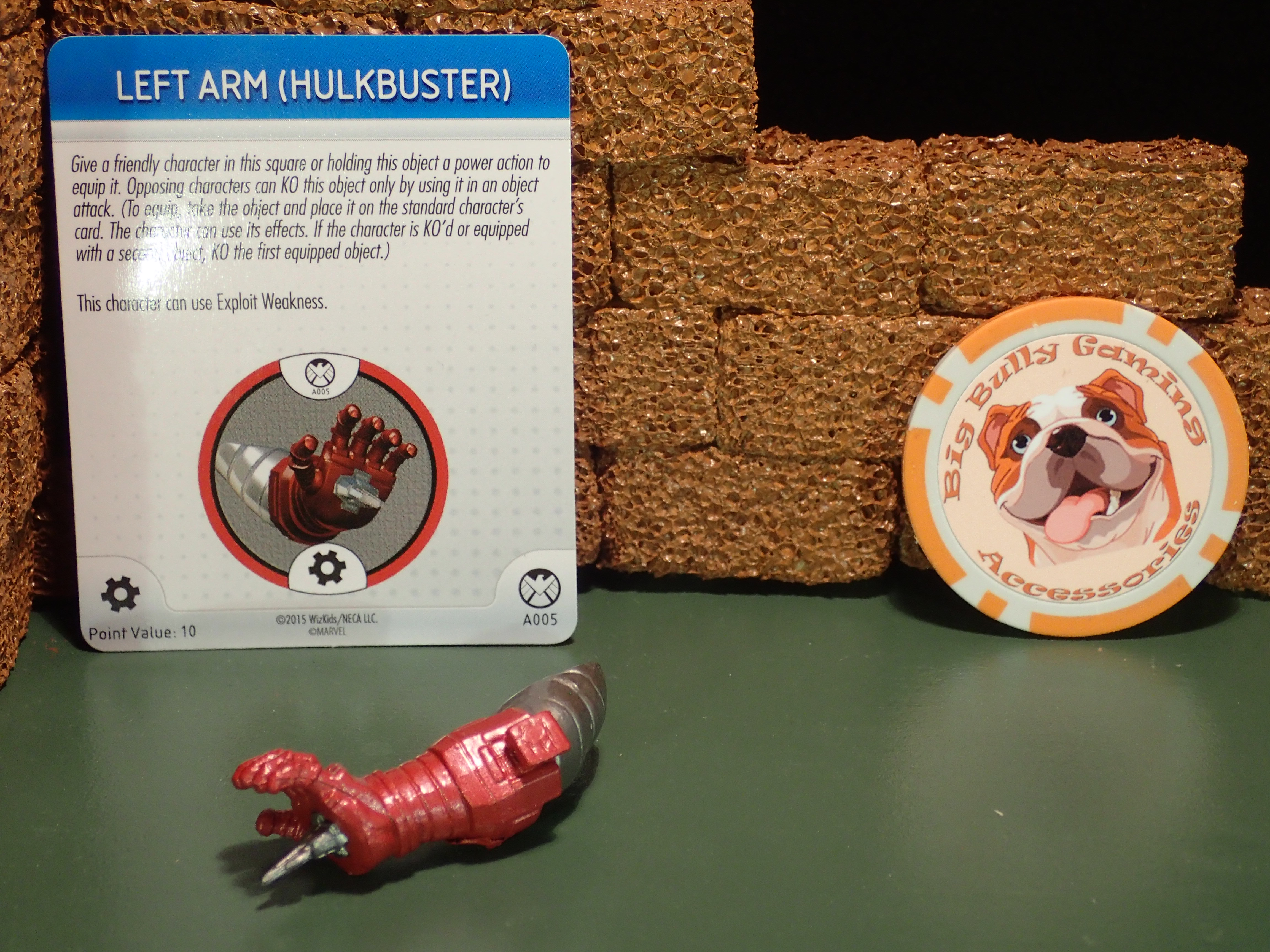 Left Arm (Hulkbuster) #A005 from the Nick Fury and the Agents of SHIELD set, and matching card. Used to assemble the playable Hulkbuster.
