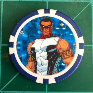 Custom image, on blue 11g tokens. Set of 3.